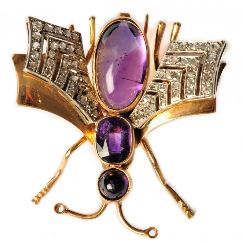 Art Deco Insect Brooch – Pink Diamonds, Amethyst & White Gold